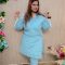 Shiffli work on front along with tissue embroided neck along with v cut on sleevs with white lacewith plain pant
